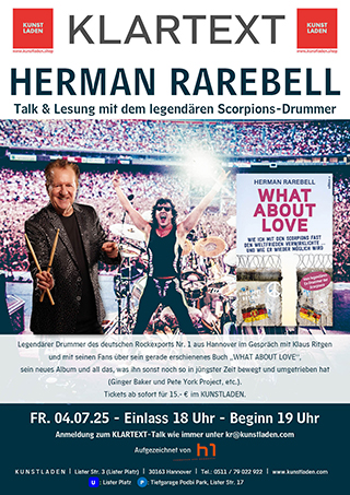 Heute Vorverkaufsstart Wieder mal ein KLARTEXT - Talk mit Lesung und Buchvorstellung im KL Wir freuen uns einen Tag vorm Stadion Open Air der Scorpions auf den langjährigen Drummer der Band, der sein gerade erschienenes Buch "What abour Love" vorstellen wird.